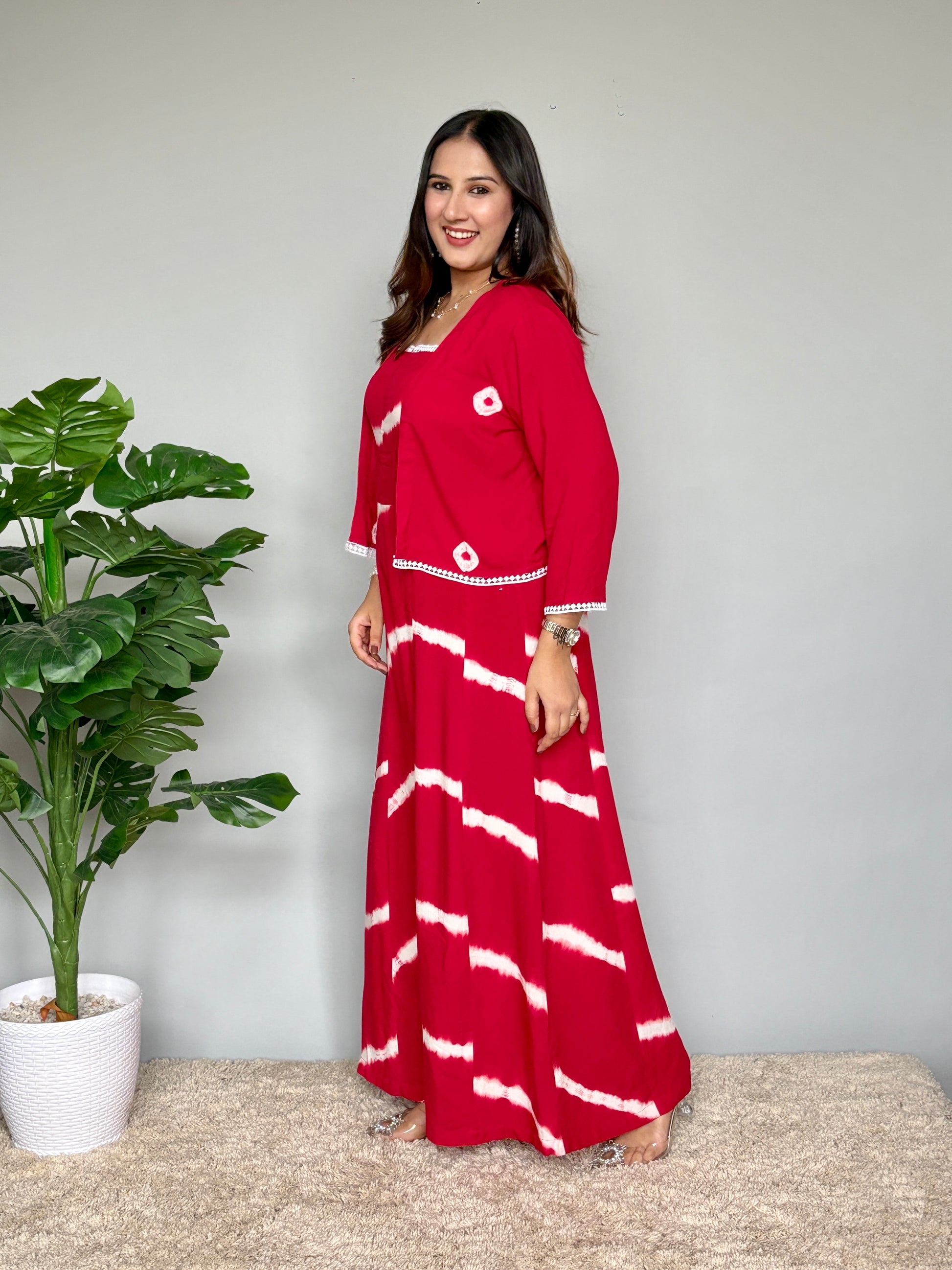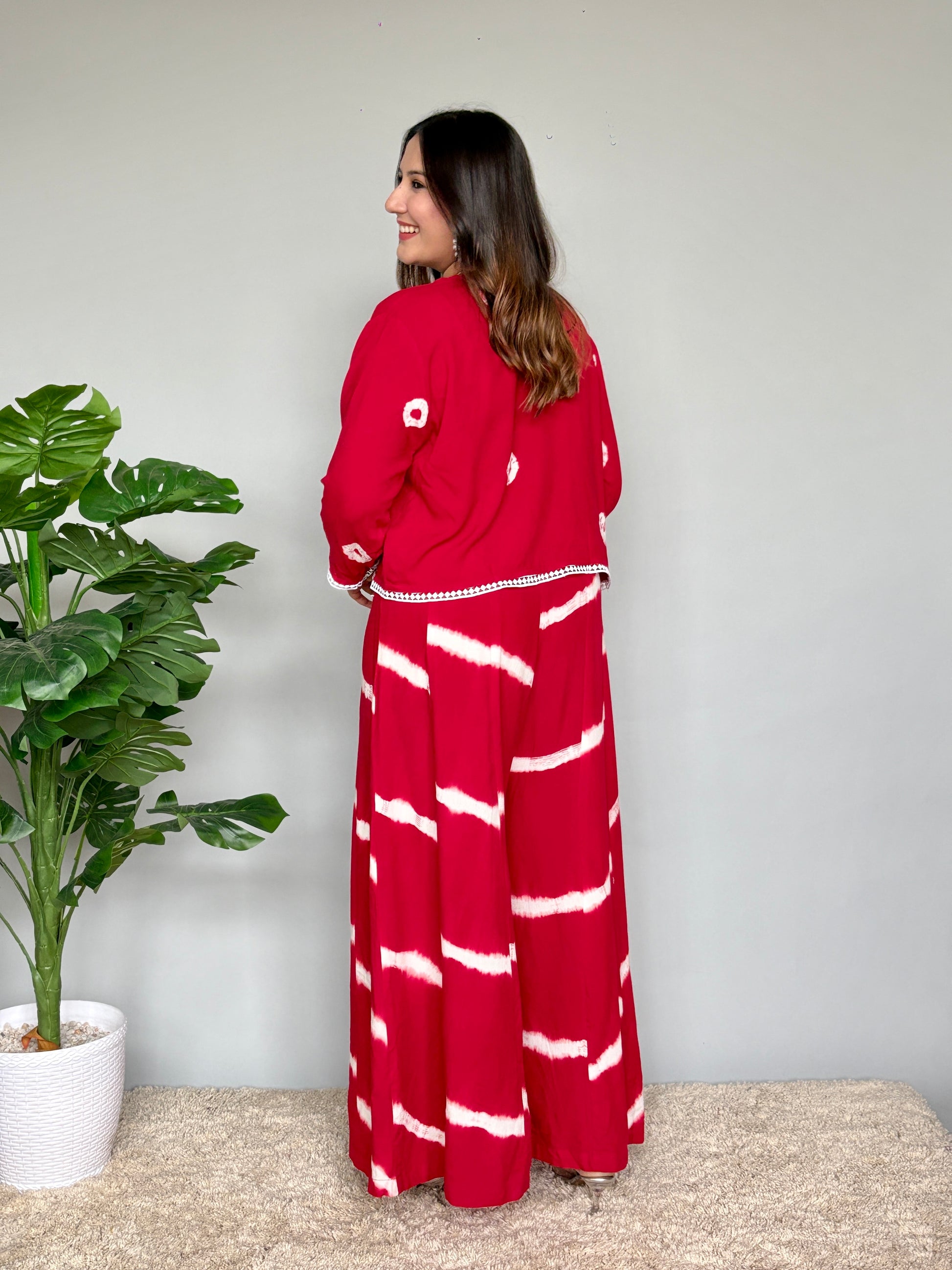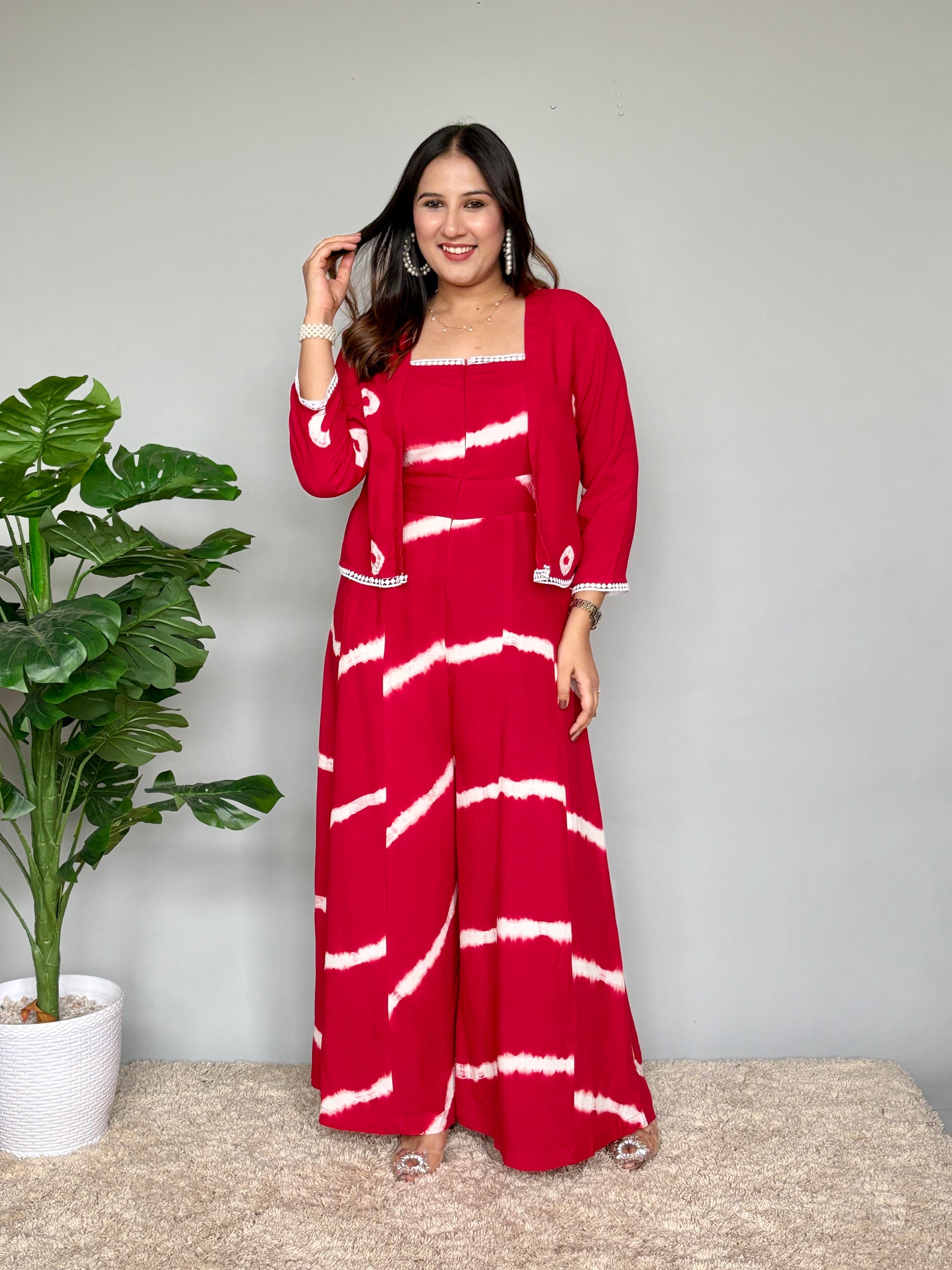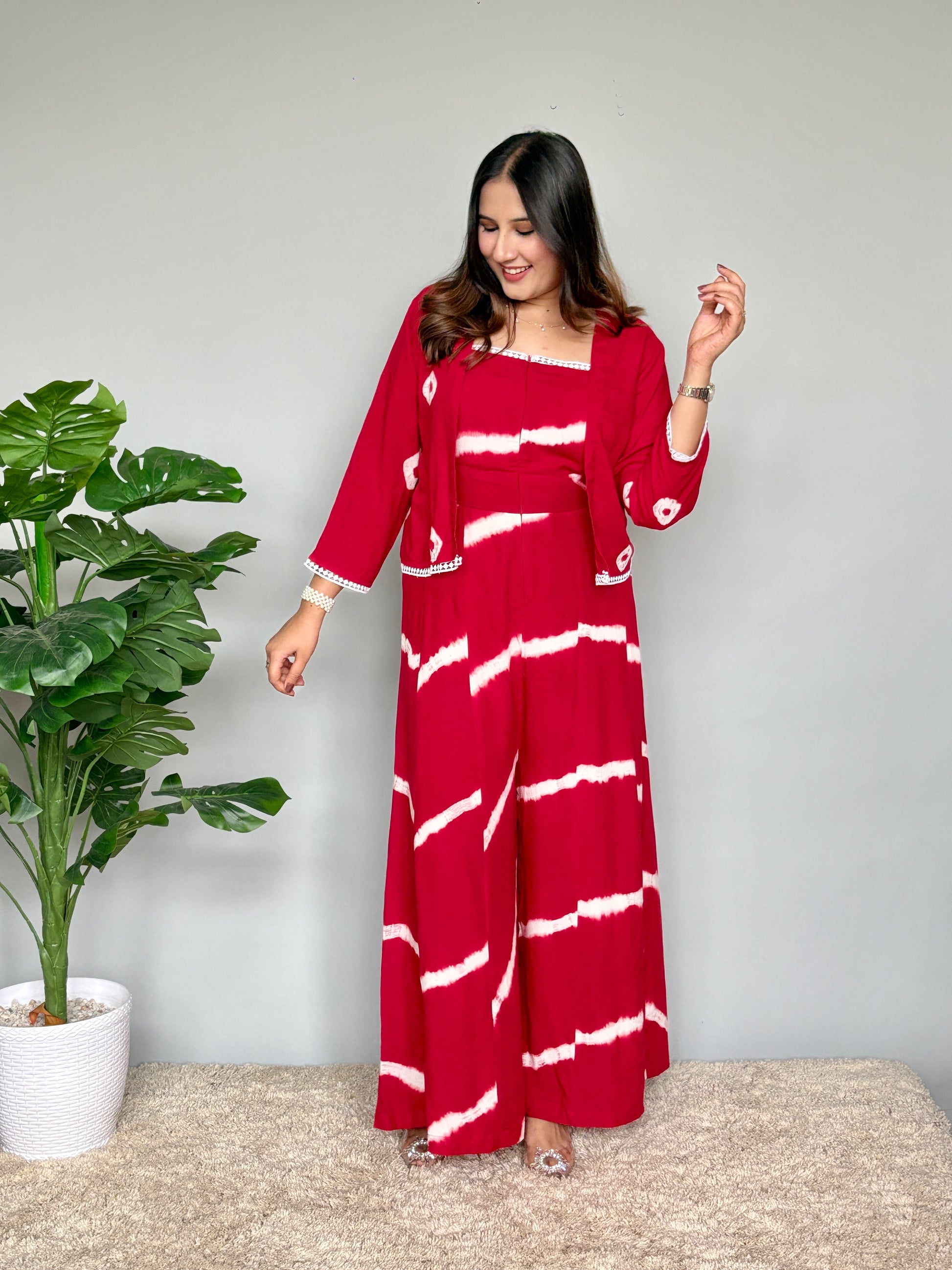 Red Tie Dye Jumpsuit With Jacket
