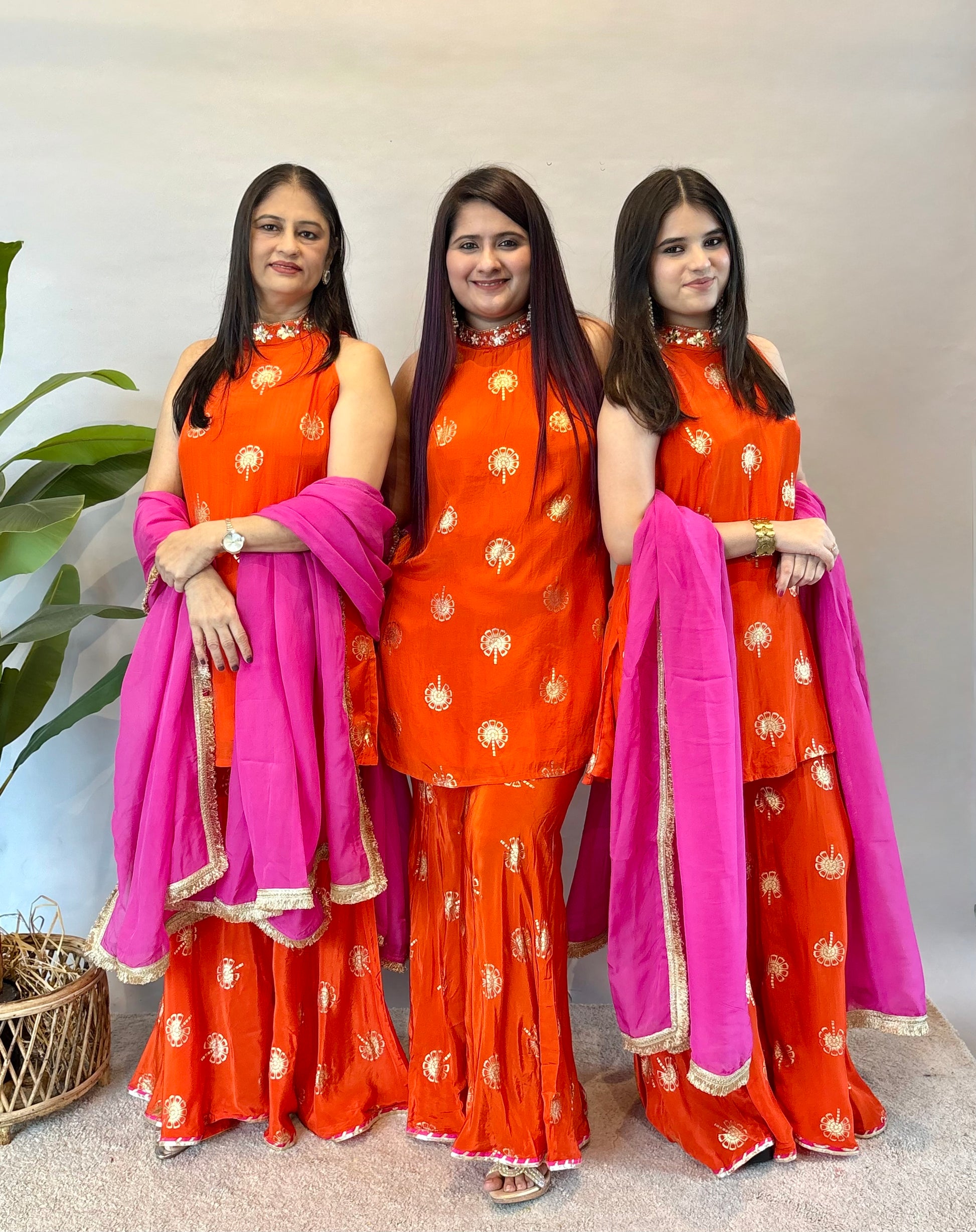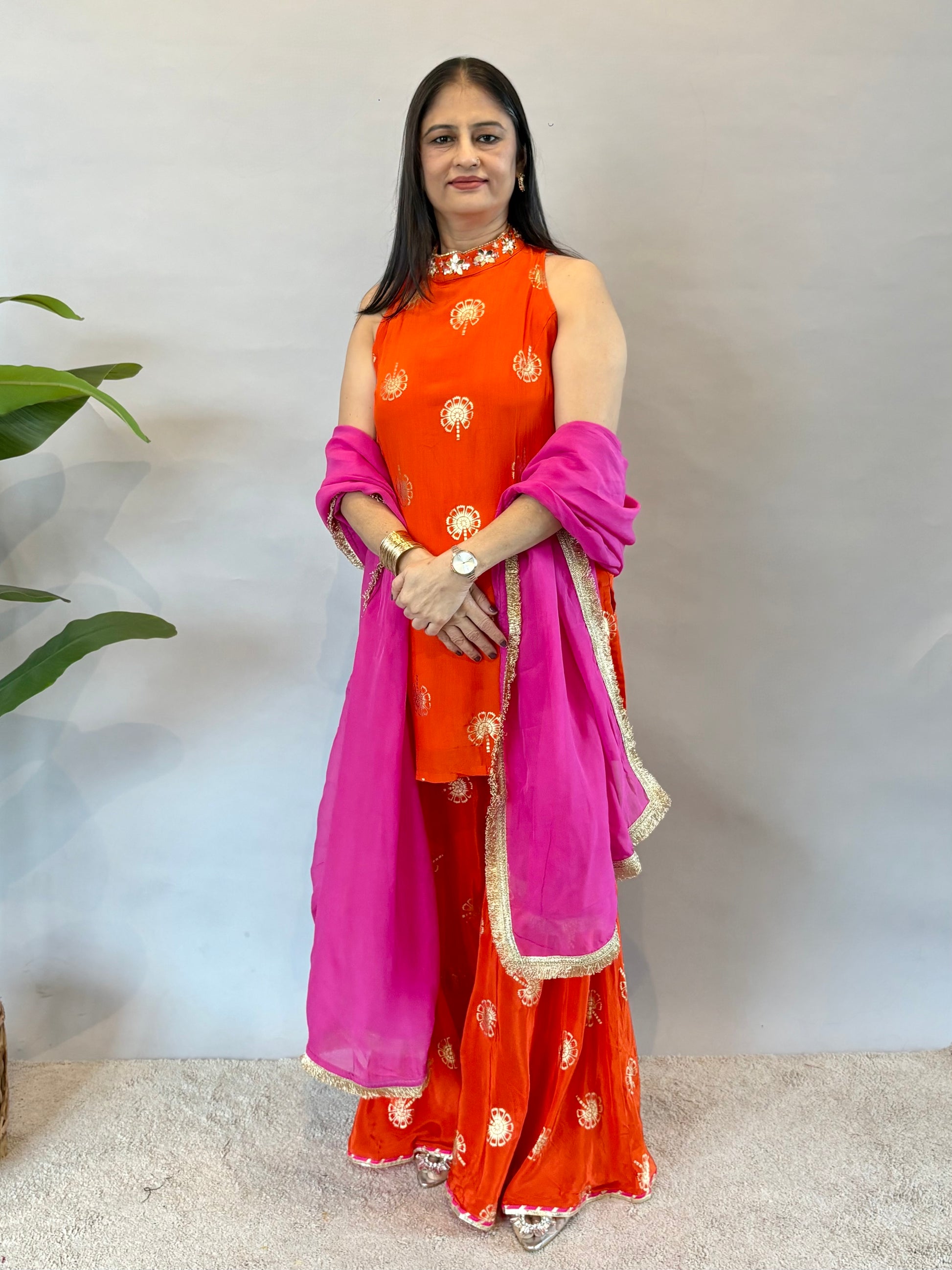 Orange Sharara Set With Pink Dupatta