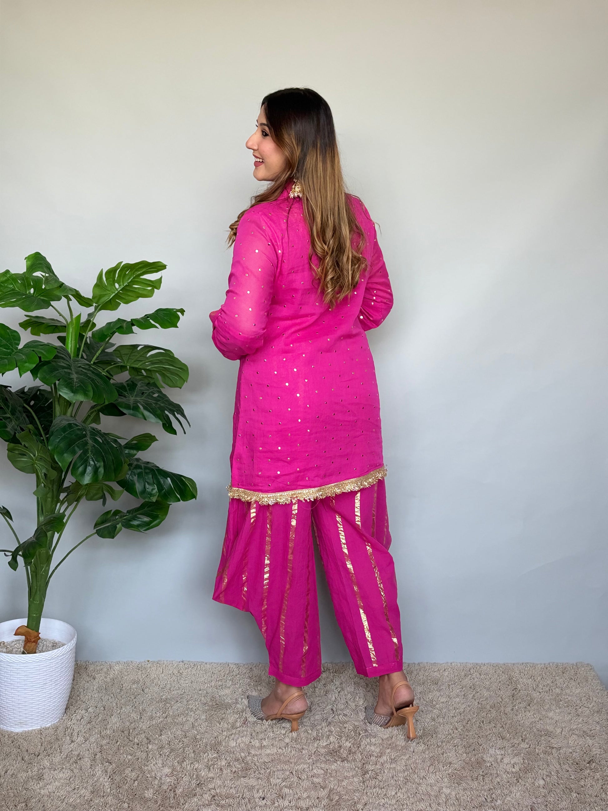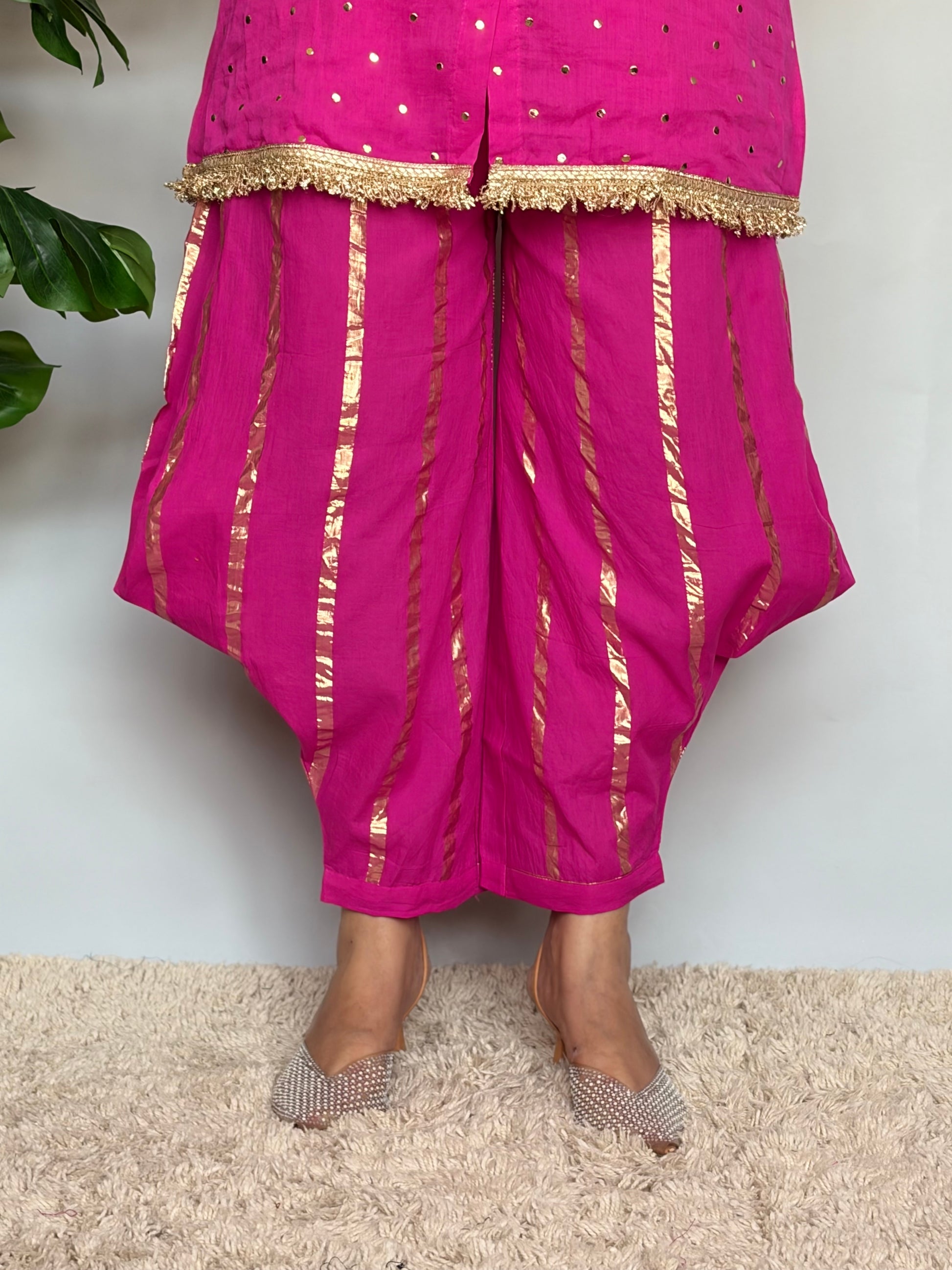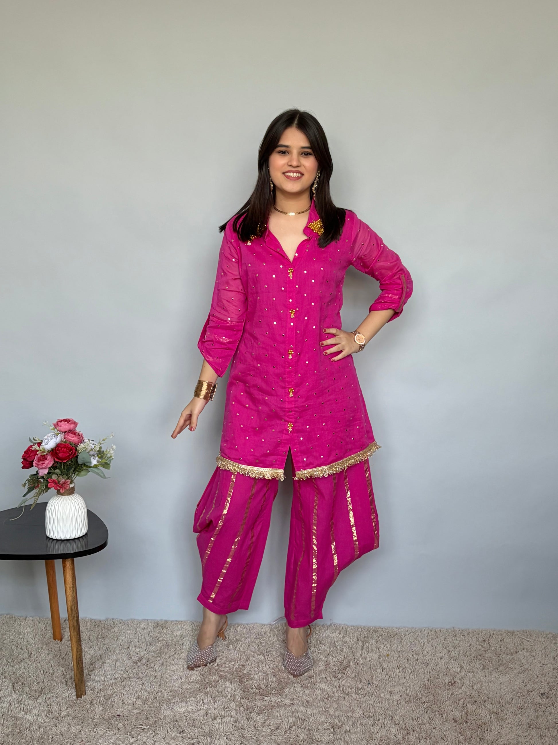 Pink Cord Set With Golden Work